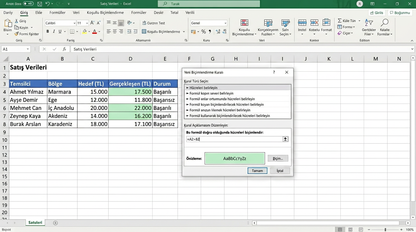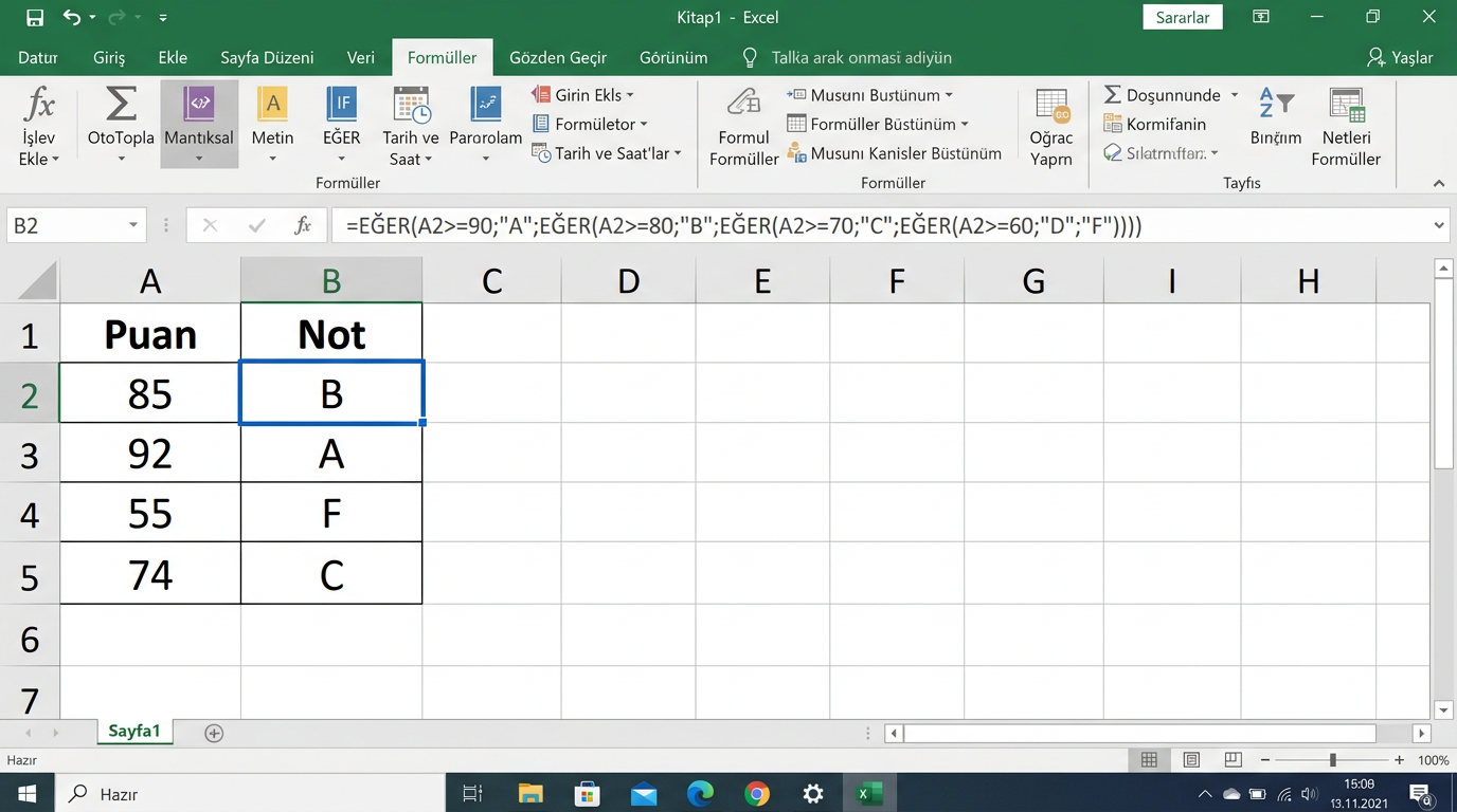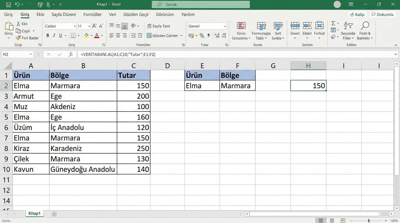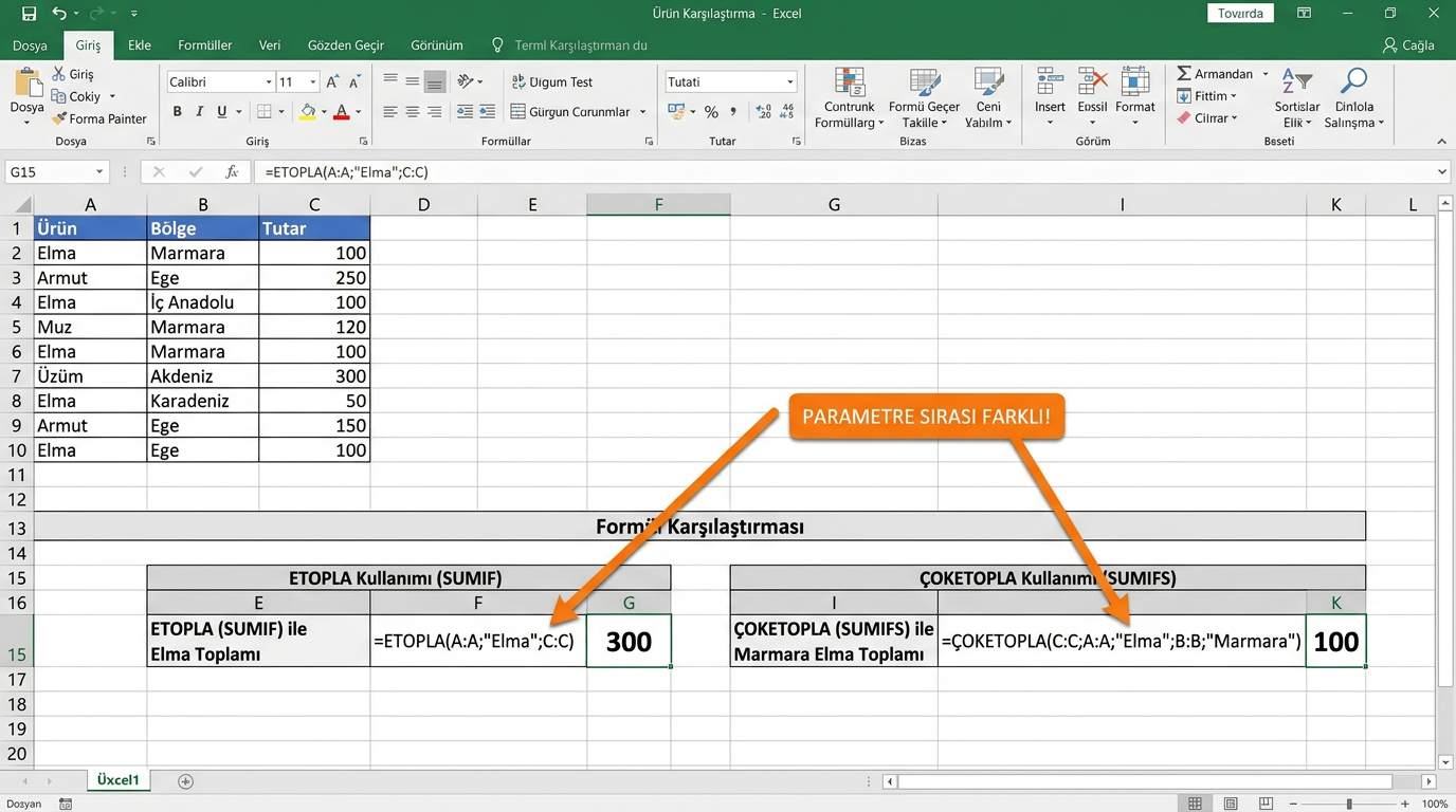 - aranan: Aranacak değer (hücre referansı veya doğrudan değer).