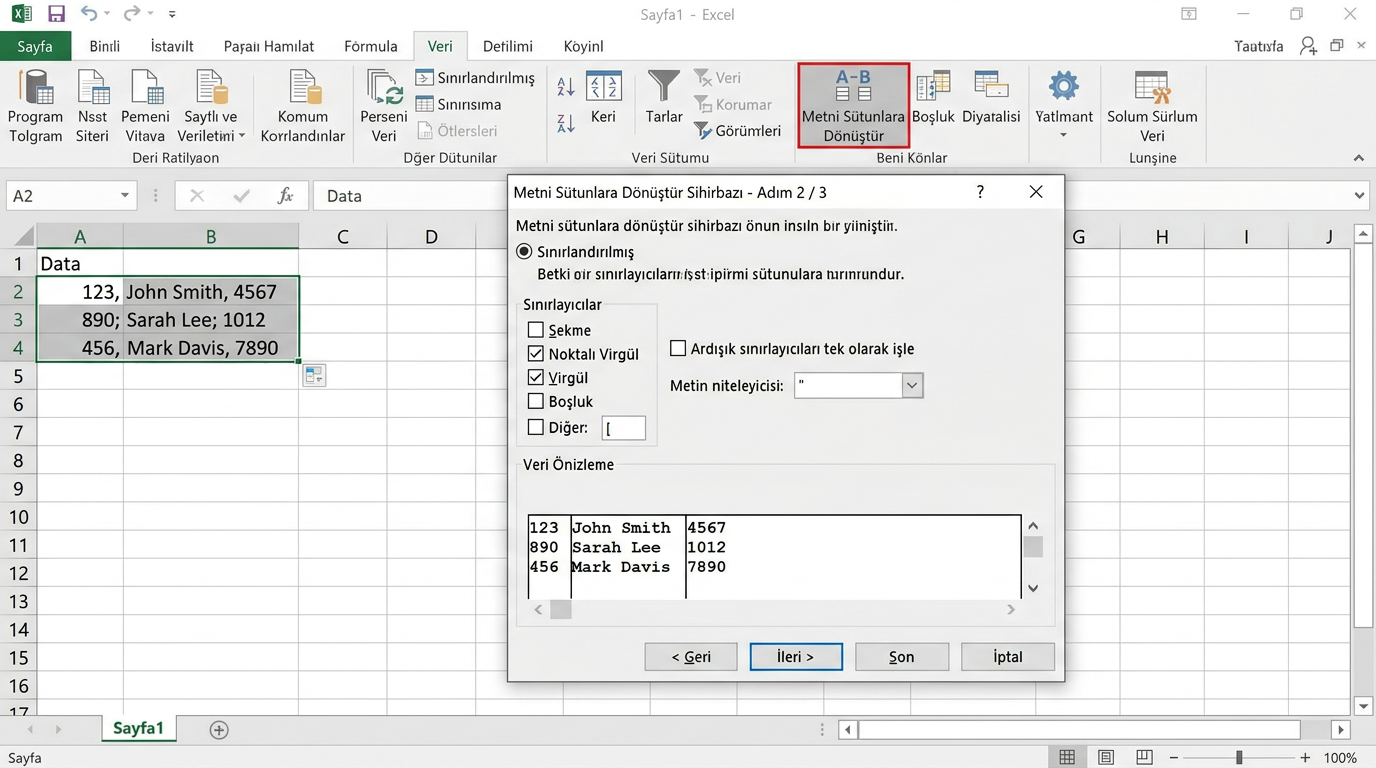 - Getirmek istediğiniz sütunun numarasını yazın: ;2 (tablodaki ikinci sütun).