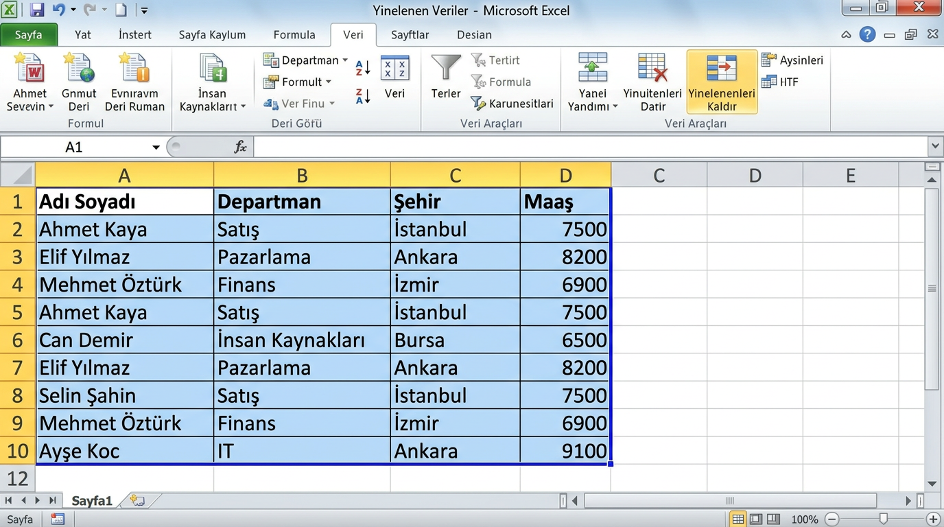 - 💡Aranan değer tablonun ilk sütununda olmalıdır — bu DÜŞEYARA'nın en büyük kısıtlamasıdır. Aranan değer başka bir sütundaysa İNDİS+KAÇINCI veya XLOOKUP kullanın.