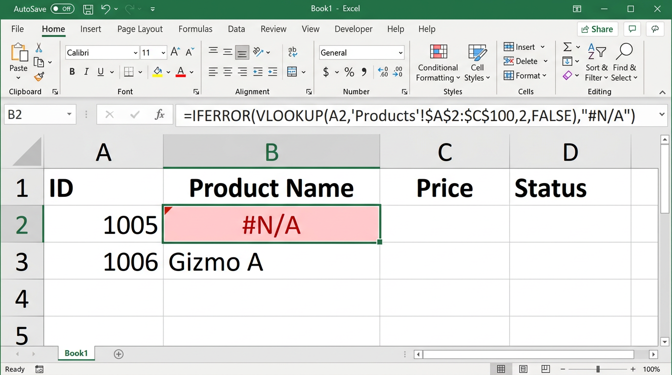 - 💡EĞERHATA ile sararak #YOK hatalarını gizleyin: =EĞERHATA(DÜŞEYARA(D1;$A$2:$C$100;2;0);"Bulunamadı").