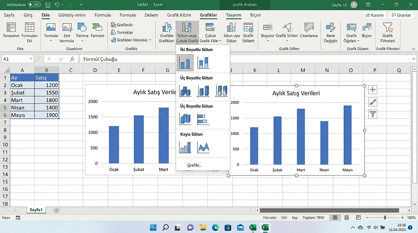 - 💡Grafik eklemeden önce verilerinizin başlık satırı olduğundan emin olun — Excel başlıkları grafik etiketleri olarak kullanır.