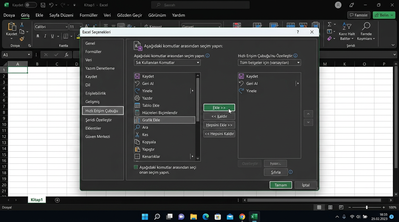 - 💡En sık kullandığınız komutları Hızlı Erişim Çubuğuna ekleyerek tek tıkla ulaşabilirsiniz.