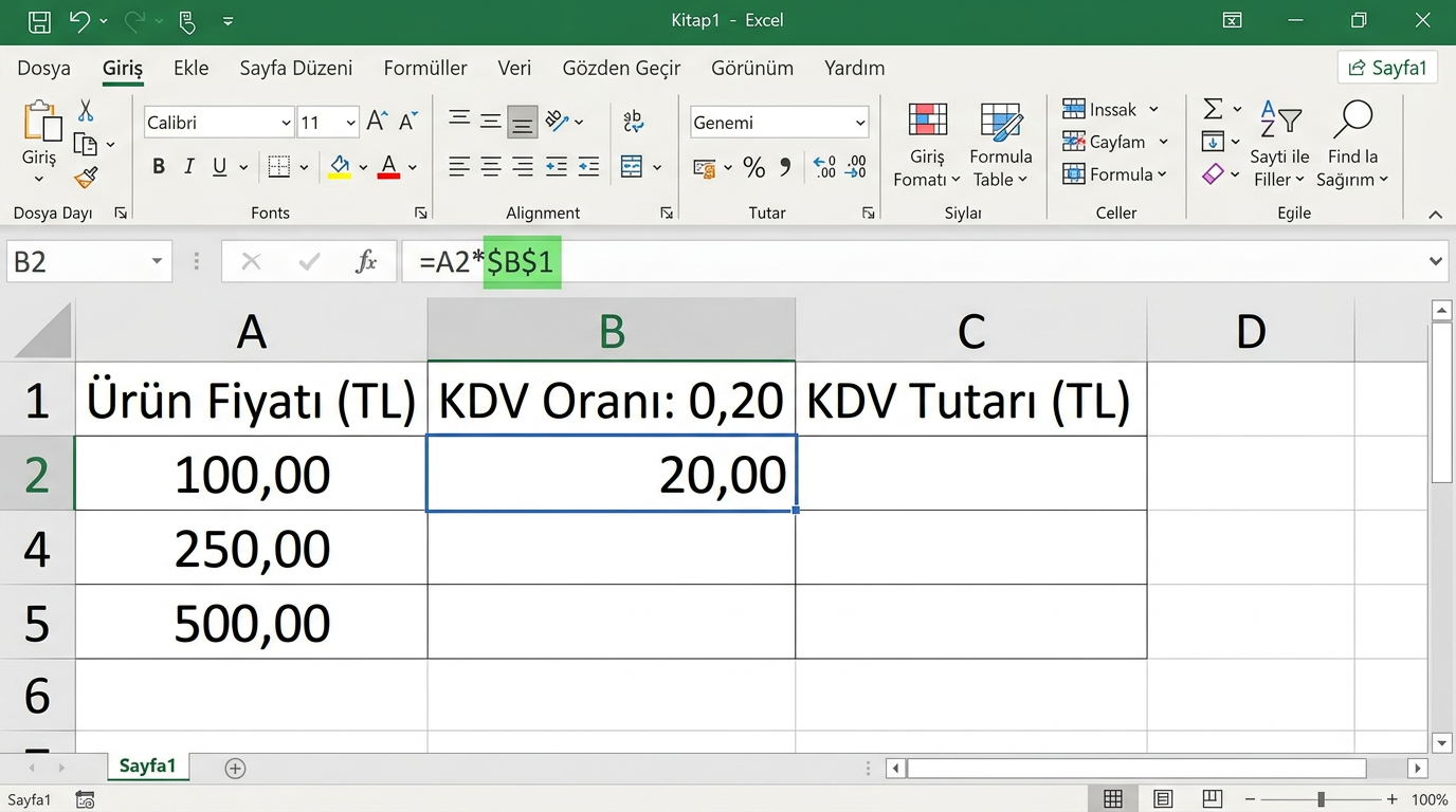 - 💡Ctrl+` (ESC altındaki tuş) ile tüm sayfadaki formülleri aynı anda görebilirsiniz. Hata ayıklamak için çok kullanışlıdır.