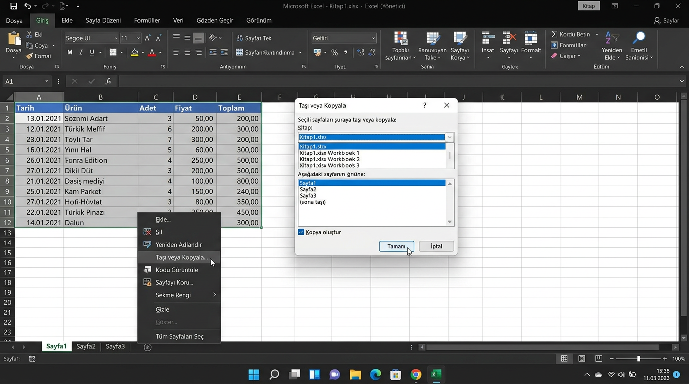 - Tablo eklemek: Verilerinizi seçin → Ekle → Tablo (veya Ctrl+T). Excel otomatik olarak başlık satırını algılar ve filtre okları ekler.